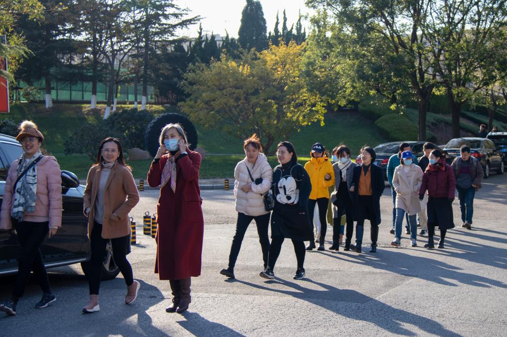 教职工们精神焕发,兴致盎然,从伟德BV官网办公楼出发,边走边交流,途经大角牛雕塑、图书馆等地,最终抵达北苑B6楼公司新办公大楼,参观新的办公场所并合影留念。