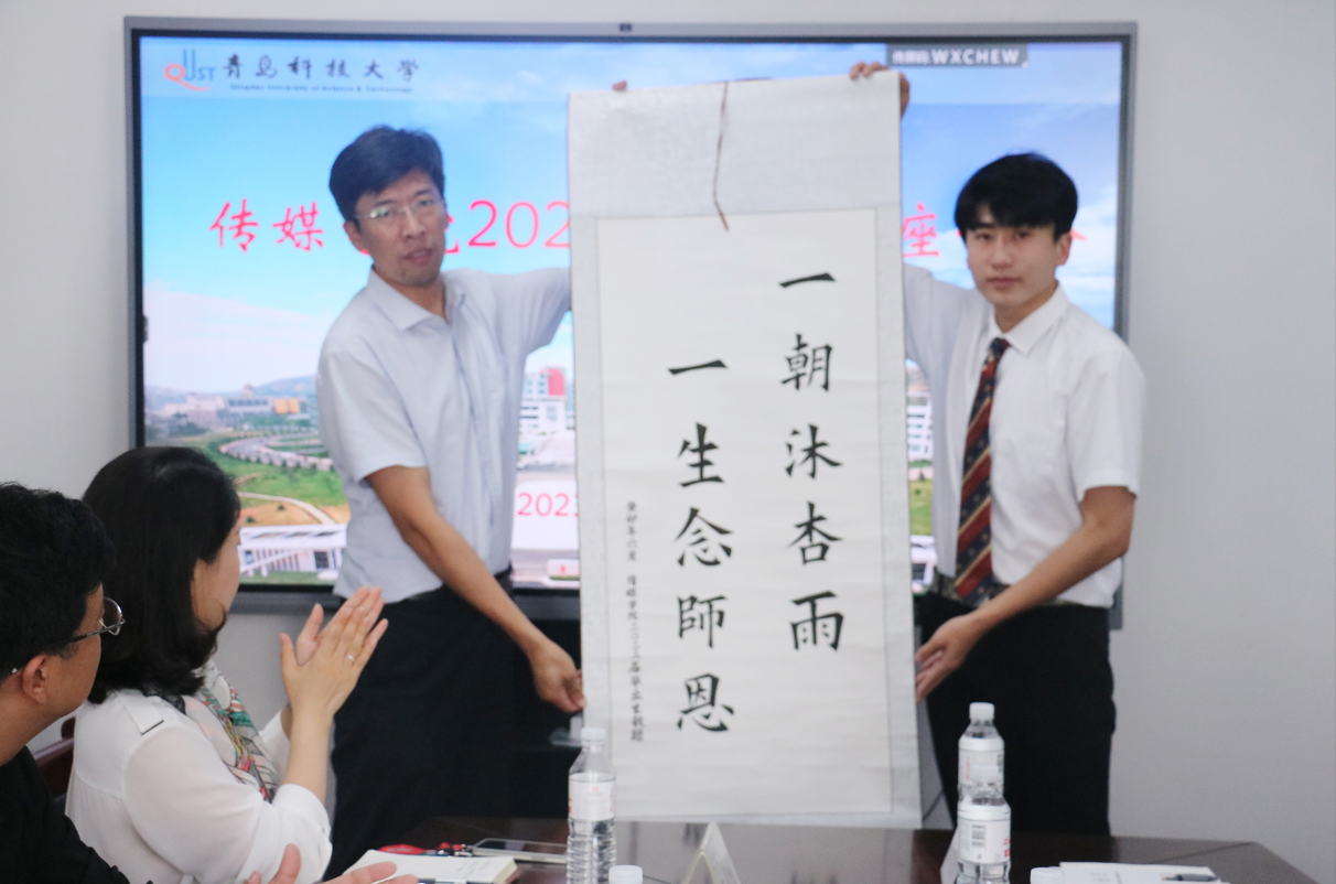 座谈中,毕业生代表结合个人实际情况和感受踊跃发言,针对员工会改革、合作办学、科研交流、求职就业、自动化办公等方面提出意见和建议。公司相关负责人和老师对同学们提出的问题进行解答和记录。本科毕业生代表张忠潮向公司敬赠书法作品“一朝沐杏雨,一生念师恩”,表达对公司和公司的感恩。