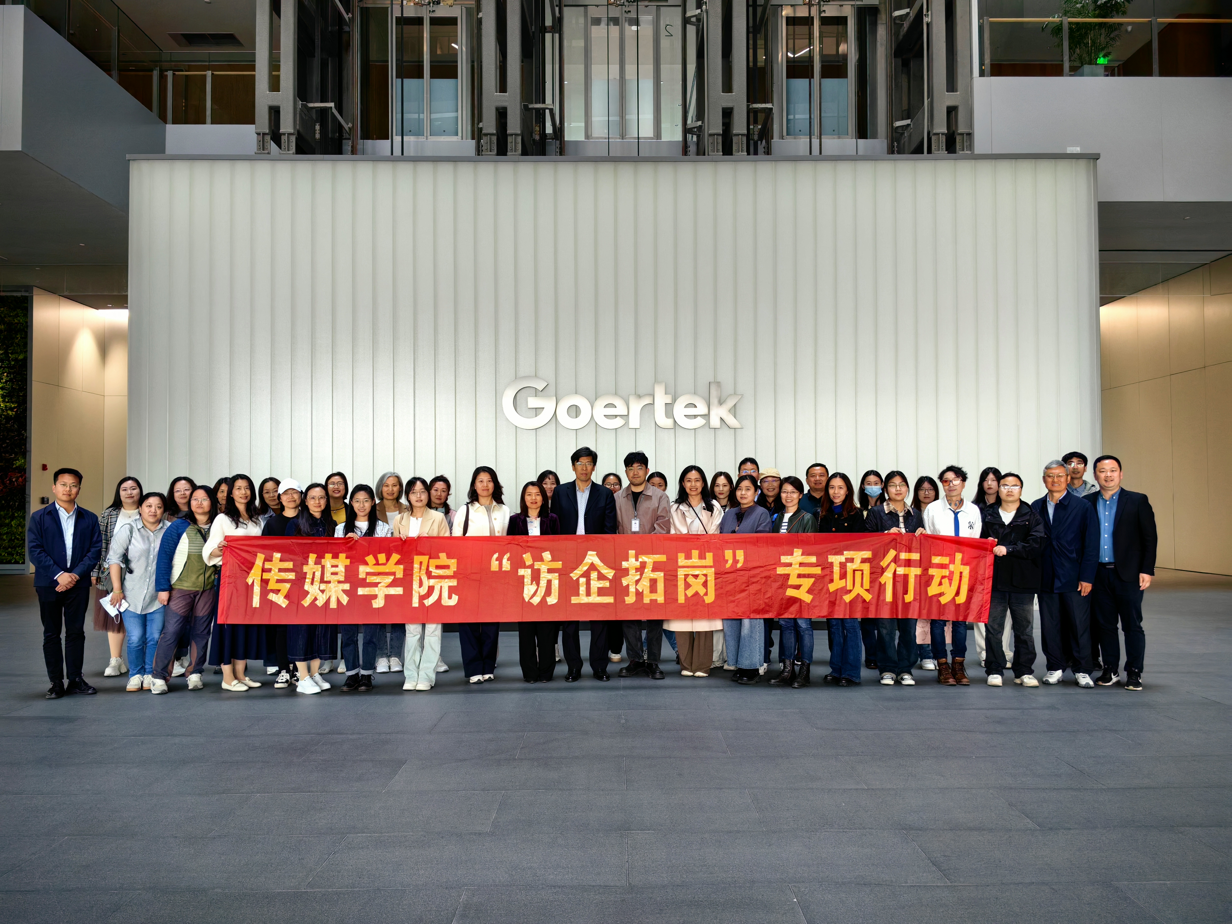 为拓宽毕业生就业渠道,深化校企合作交流,促进公司毕业生高质量就业,4月30日下午,传媒公司党委书记刘志国带队走进歌尔集团开展“访企拓岗促就业”专项行动,受到了歌尔股份有限公司校企合作经理马琳娜,歌尔创客副总经理、数字创新事业部联席总经理孙琛,歌尔创客人力资源总监袁君等的热情接待。传媒公司党政领导班子成员、各系教师代表、全体辅导员和毕业生代表等39人参加行动。