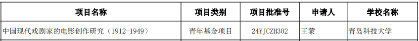 9月12日,教育部公布了2024年度教育部人文社会科学研究项目立项名单,公司王蒙博士申报的《中国现代戏剧家的电影创作研究(1912-1949)》(项目号:24YJCZH302)获得青年课题立项。