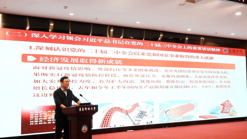 思政课围绕“深入学习贯彻党的二十届三中全会精神,青年须有‘信’”和“勤学不辍、知行合一,青年须有‘为’”两个层面展开。课上,张洪坤为新生解读党的二十届三中全会精神内涵,从党的二十届三中全会的基本情况、深入学习领会习近平总书记在全会上的重要讲话精神及青年学子深刻学习领会全会精神的基本要求三个层面,启迪学子把握文件内涵,通过强国目标,找到属于自己的青春赛道,锚定强国战略,启发生生不息的青春奋斗力,在新时代新征程上把握历史机遇,为实现中华民族伟大复兴的中国梦贡献青春力量。