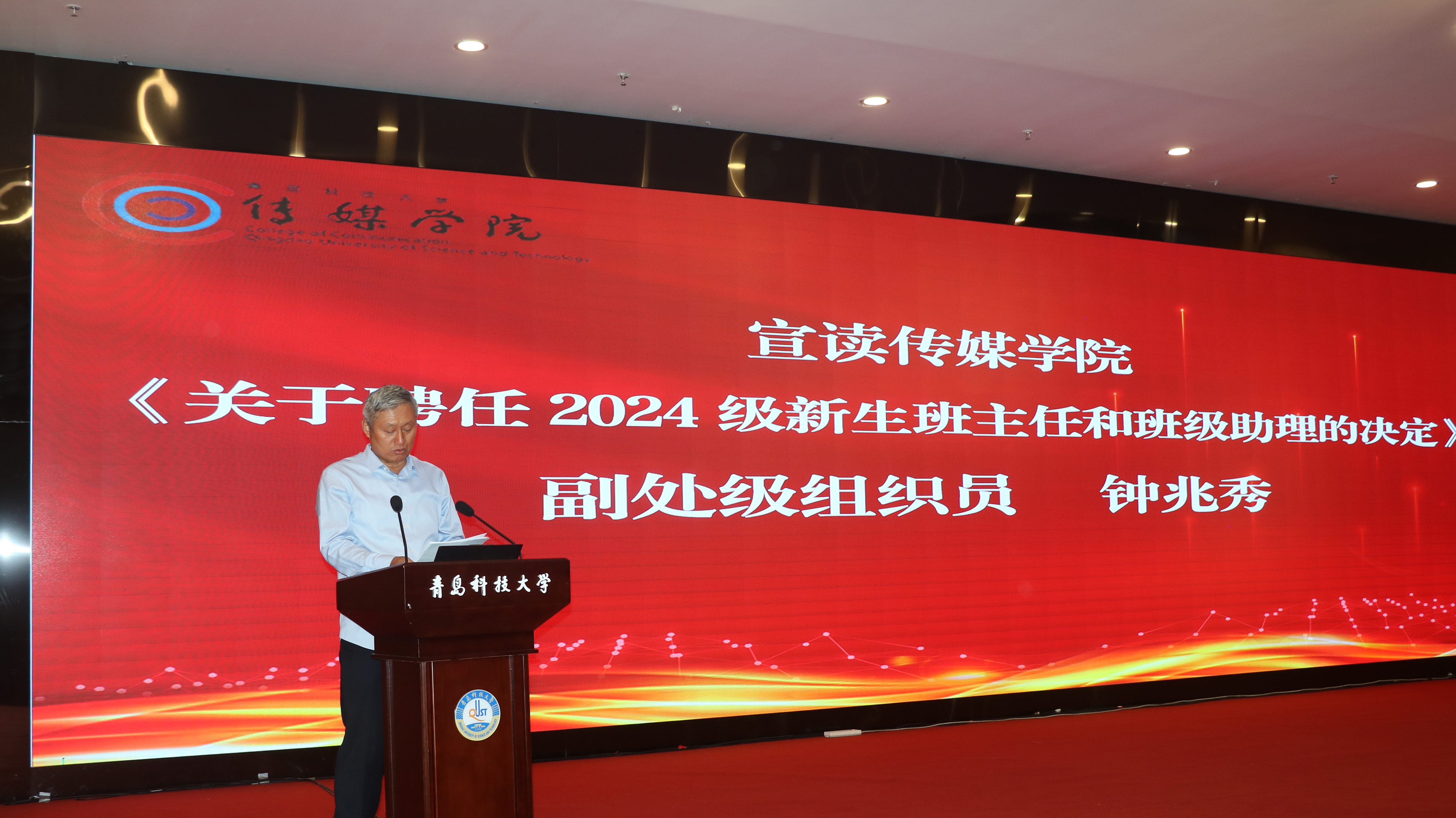 张洪坤、庄莹分别为缪潇玄等8名伟德BV官网2024级研究生班级助理和赵特等9名伟德BV官网2024级本科班级助理颁发聘书;钟兆秀宣读了《伟德BV官网关于聘任2024级新生班主任和班级助理的决定》。