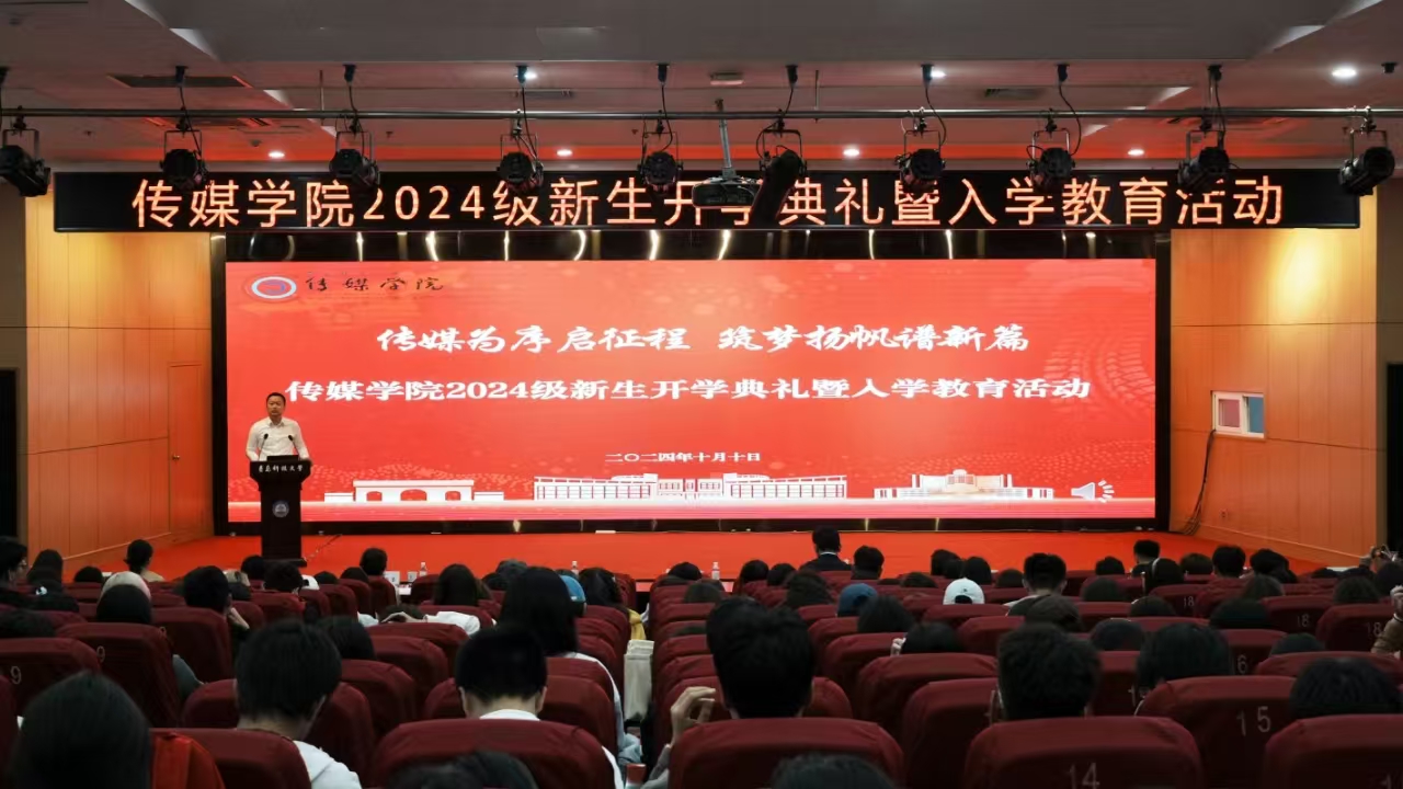 最后,张洪坤为全体2024级新生讲授《深入学习贯彻党的二十届三中全会精神 为全面推进中国式现代化建设贡献青年力量》入学思政课,他围绕“深入学习贯彻党的二十届三中全会精神,青年须有‘信’”和“勤学不辍、知行合一,青年须有‘为’”两个层面展开,引导传媒学子扣好大学学习生活的“第一粒扣子”。