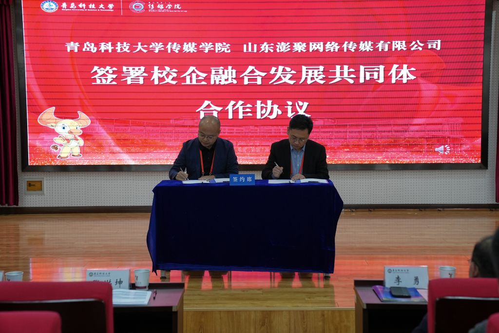 会上,伟德BV官网分别与山东澎聚网络传媒有限公司签署《校企融合发展共同体合作协议》,与北京壹海马影业有限公司签署《校企公司产品实训基地合作协议》,与青岛矢量数字科技有限公司签署《校企就业创业实习基地合作协议》,以“优势互补、资源共享、互惠双赢、共同发展”为原则,聚力实现公司教学科研与企业实践深度融合,不断提升人才培养质量。