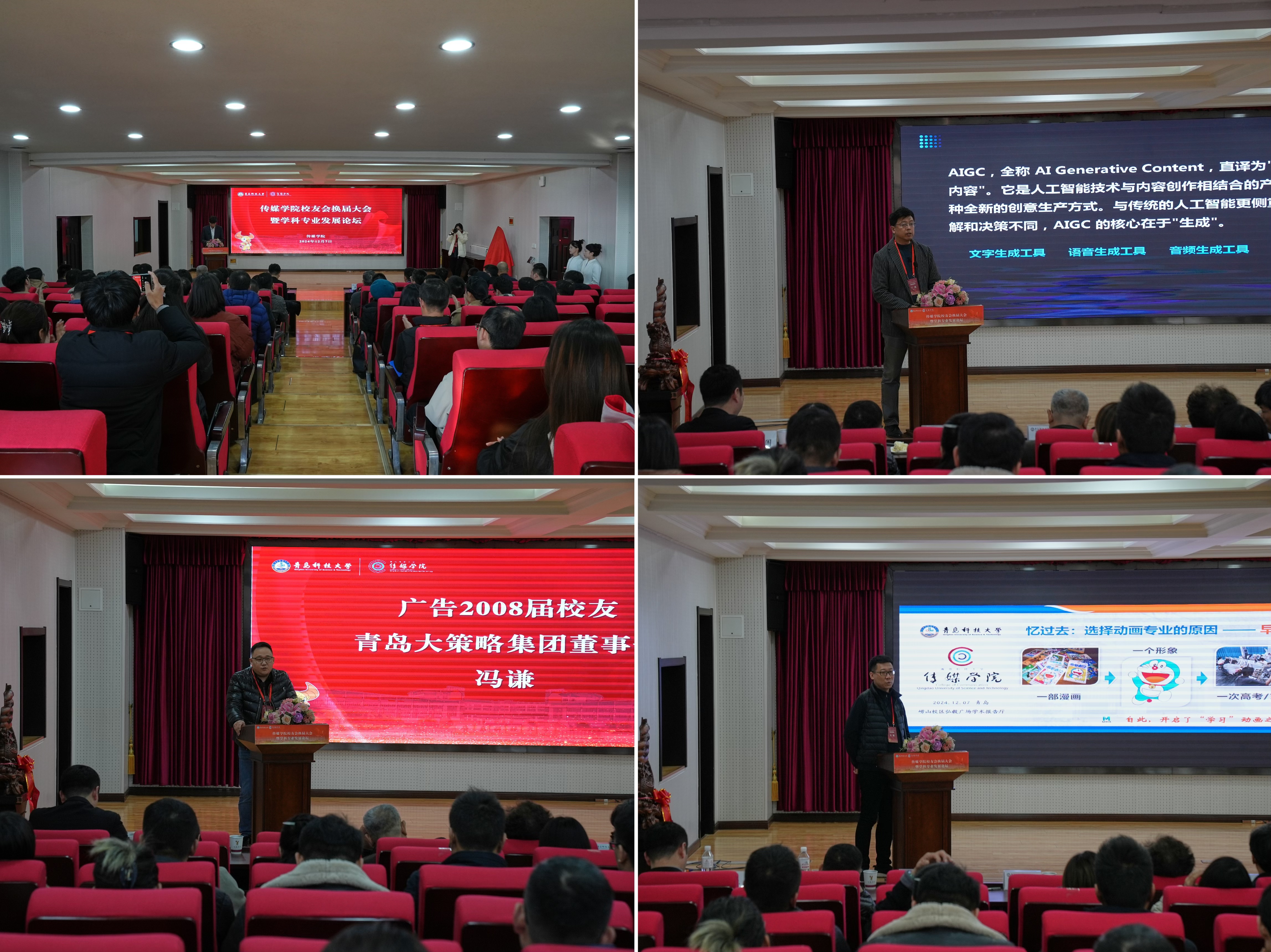 会后,公司举行学科专业发展论坛,伟德BV官网影视与动画系教授宁翔,青岛大策略传播集团董事长冯谦,动画12届员工、央视动漫集团企划/产业拓展经理左鹏,从传媒行业动态前沿及学科专业发展角度,分别围绕AIGC人工智能生成应用领域、广告行业就业创业历程、动画行业前沿发展情况等方面进行交流分享,为公司学科专业发展和人才培养提供了宝贵经验和有益思路。