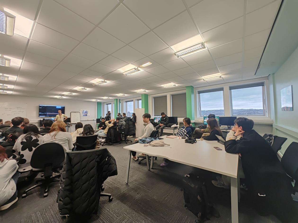 在“走进教室”这一环节,公司师生积极投身并亲身体验了来自布拉德福德大学的彼得·查普曼(Peter Chapman)老师主讲的动画后期制作课程。课程期间,彼得·查普曼(Peter Chapman)老师传授了他在动画后期制作领域的宝贵经验,还细致阐述了从剪辑、色彩调整至视觉特效的完整制作过程。同学们通过参与这次周到安排的课堂教学,深切感受到了布拉德福德大学的特有教学风格和课堂气氛,这不仅提升了他们的学习体验,也使他们对于在英国进行长期学习的未来充满了憧憬。