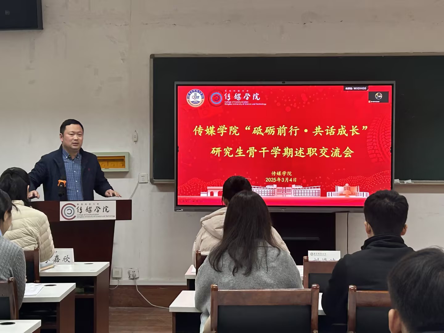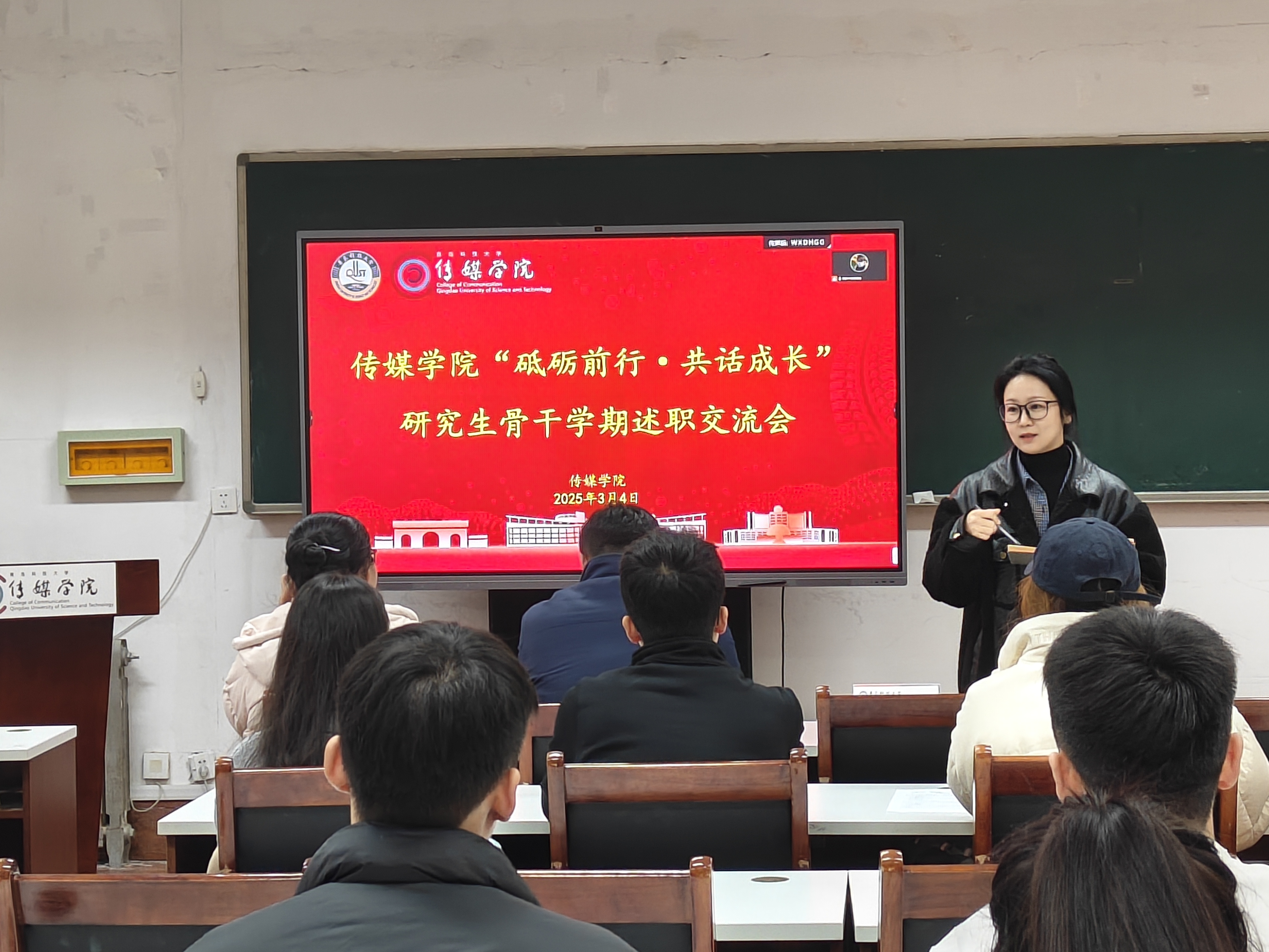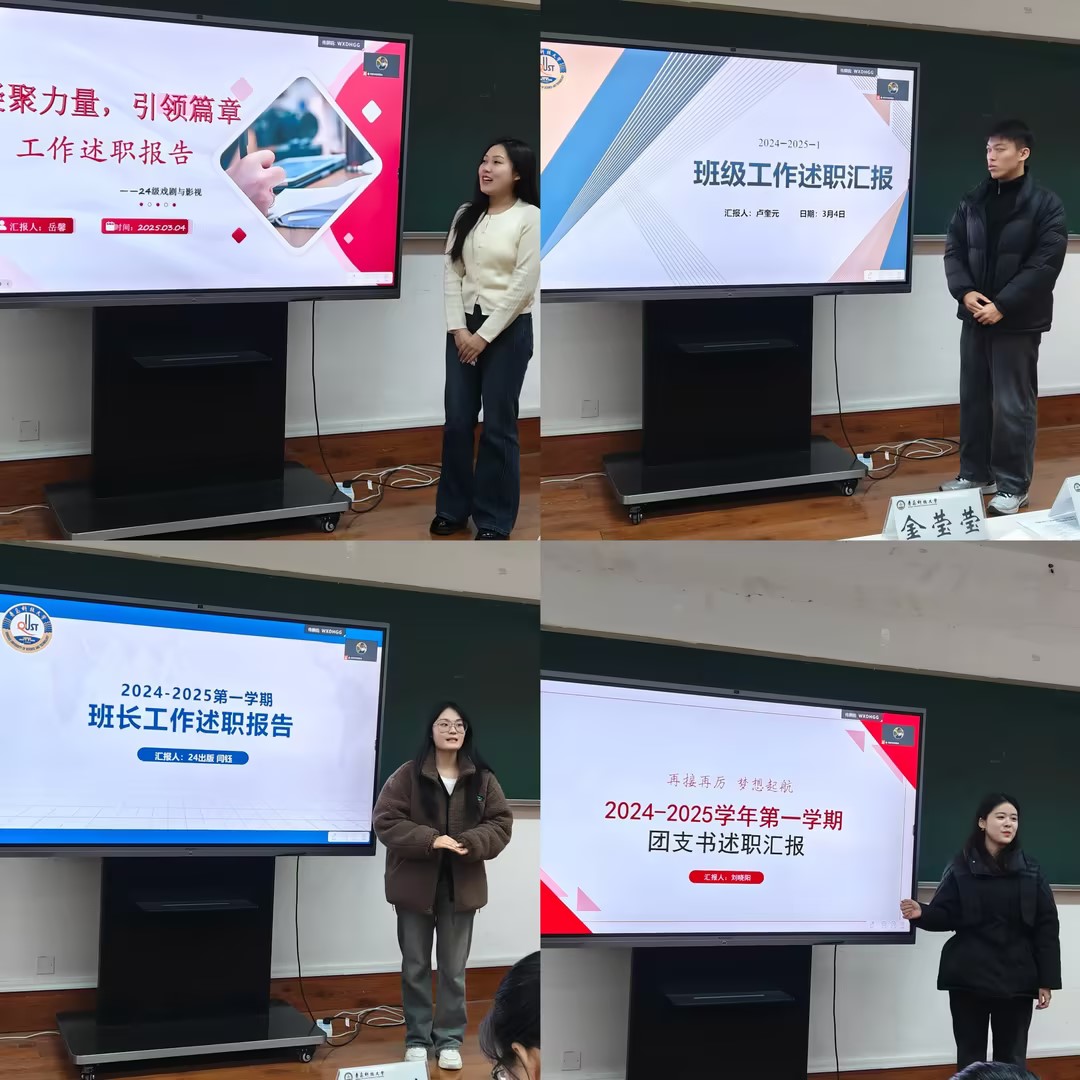 与会研究生班委围绕上一学期开展班级工作、服务同学,存在问题不足和下步计划举措,依次进行分享交流,聚焦日常班级管理、学术科研、讲座报告和宿舍内务卫生等重点工作进行系统梳理,通过PPT展示报告,为公司发现、培养和选拔优秀研究生骨干提供了支撑,为提高传媒学工质量奠定坚实基础。