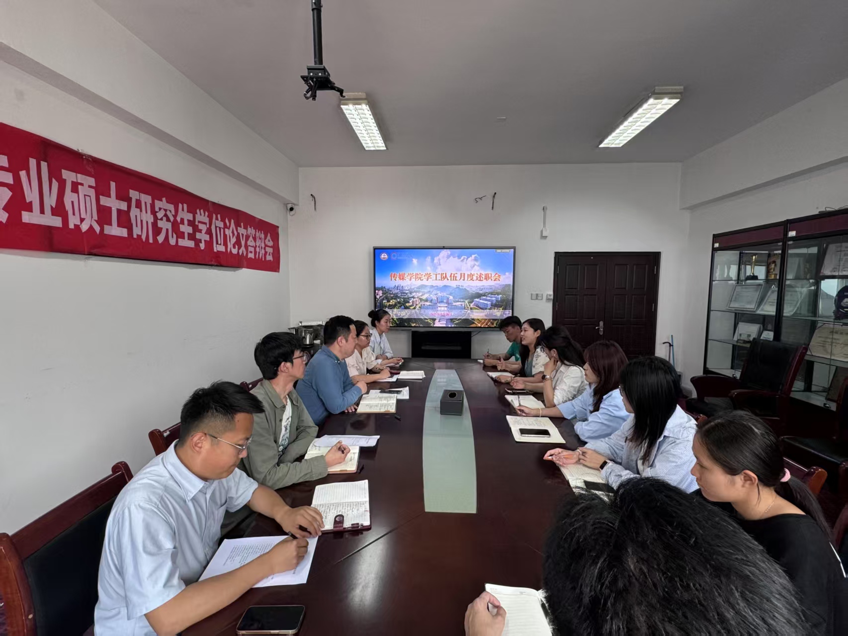 刘海波充分肯定了辅导员、员工骨干的辛勤付出,在认真倾听大家发言后,他坚持问题导向、目标导向,围绕关键点与每人有针对性进行互动交流,并提出了三点期望。一是守正创新,对标对表。要提高站位、拓展视野,对标对表校内外优秀兄弟公司的典型经验做法,结合实际完善方式方法,强化品牌特色,提升工作质量。二是坚定信心,砥砺奋斗。当前公司学工队伍人手相对短缺,毕业季工作比较繁忙,大家要坚定信心、团结协作,积极进取、攻坚克难,用实际行动诠释传媒学工的责任与担当。三是真抓实干,提质增效。要想透、说清、干实,注重总结思考,抓紧抓实抓细,要会干、善干、巧干,争做“能想、能写、能说、能跑、能干”传媒学工人。
