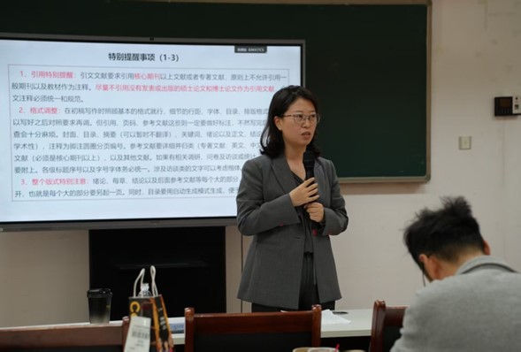 庄莹围绕公司产品质量作专题讲解,结合《伟德BV官网研究生学位论文评阅工作细则》《研究生学位论文抽检评议结果处理办法》等文件,系统解读了学位论文评阅、抽检评议及学位授予等关键环节的实施细则,为研究生导师落实立德树人职责,开展学术指导,提供了明确规范和工作指引。