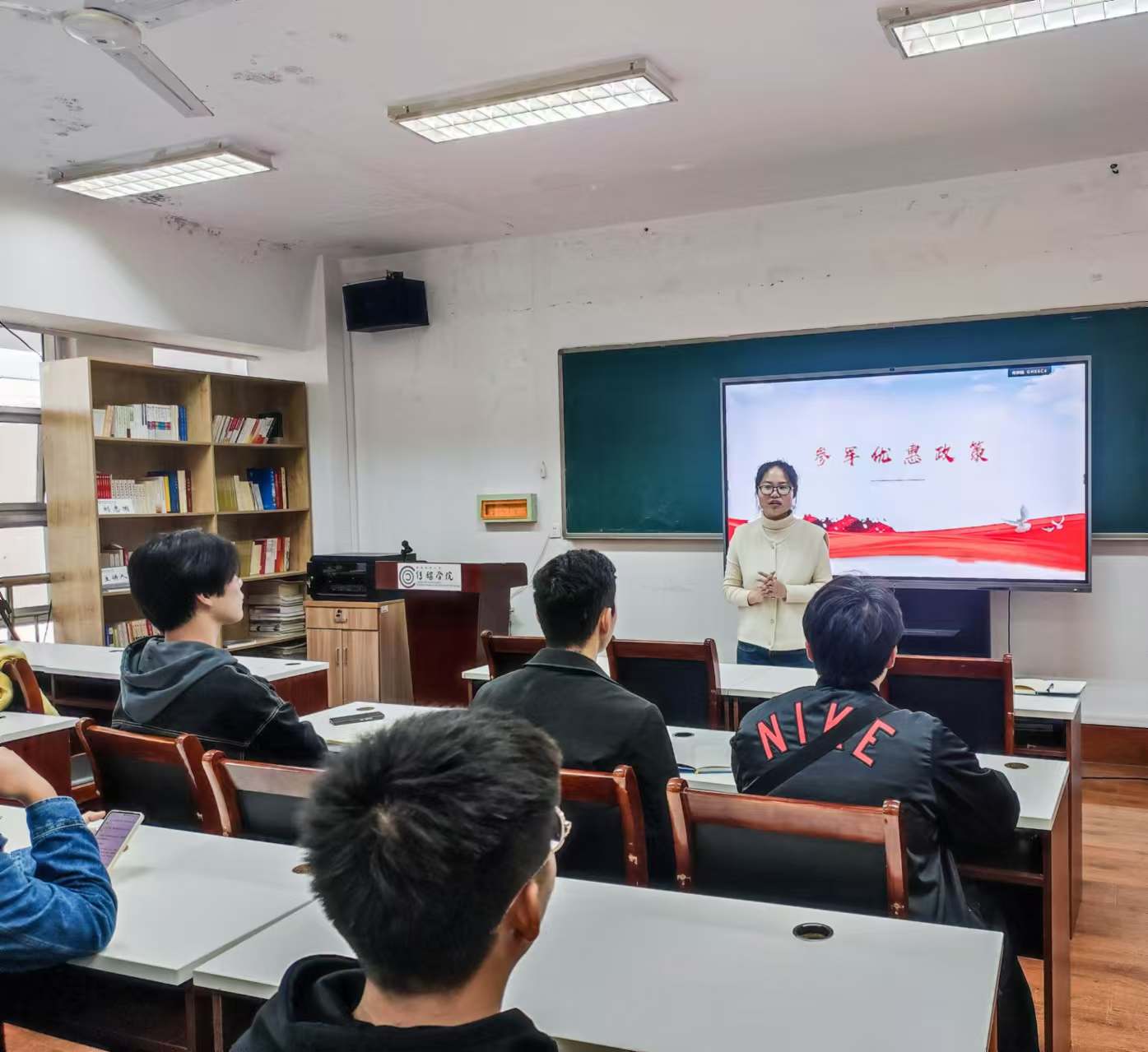 金莹莹强调了国家征兵工作的重要意义,号召青年老员工作为国家的未来和希望,有责任也有义务投身国防事业,为国家的繁荣富强贡献自己的青春力量。同时,详细介绍了当前的征兵入伍政策,包括报名条件、选拔流程、优惠政策等,让同学们对参军入伍有了更加全面和深入的了解。