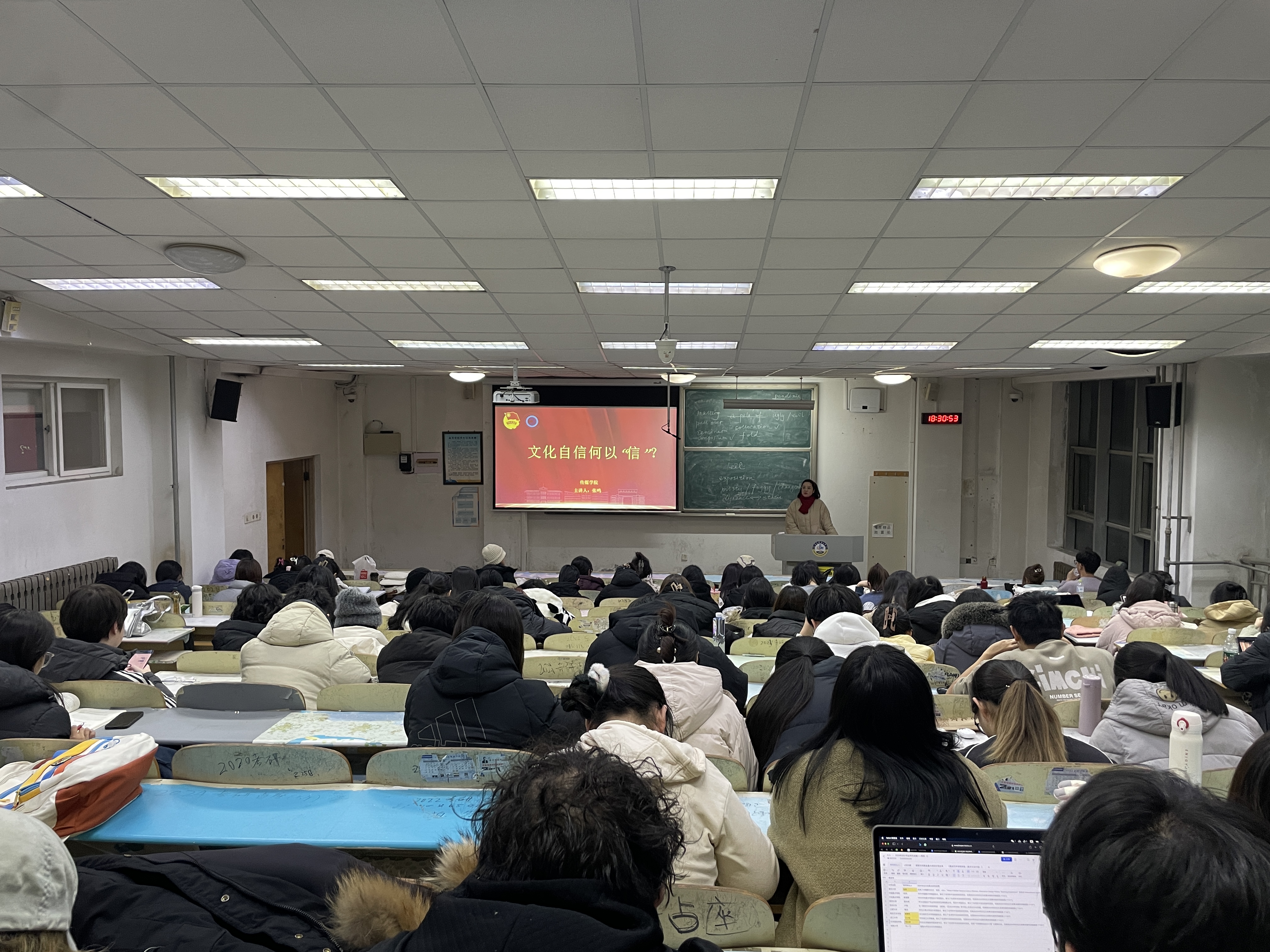 张鸣以“文化何以‘信’?”“文化自信信什么?”“文化自信如何信?”“文化自信躬自信“四个问题为引入,先向入团积极分子们讲述了什么是中华文化基因,不仅讲述了中华文化基因的核心思想、生成过程以及经久不衰的原因,并且讲述了中华文化基因的现代意义以及所面临的时代挑战。随后,张鸣以当前文化传承挑战为背景,讲述了青年老员工应如何坚定文化自信、坚持传承和弘扬中华优秀传统文化,践行社会主义核心价值观,担负起“文化强国”的使命。最后,她向同学们讲述深植文化自信的具体做法,并带领同学们展开了热烈的讨论和交流,共同探讨如何在新的时代背景下,传承和发扬本土文化。