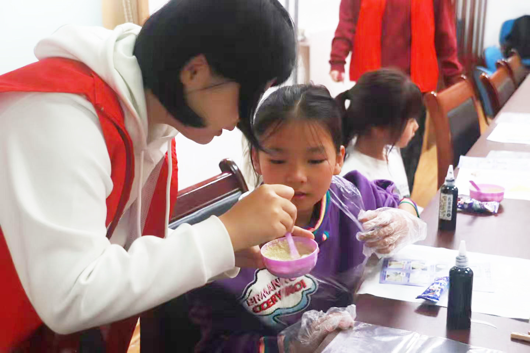 当孩子们捧着亲手染制的蓝白织物,眼底闪烁的光亮,是心灵褶皱被抚平的最佳证明。豆染非遗不仅为一块棉布赋予了文化重量,更给了孩子们一个情绪的温柔出口、一次自我价值的真切确认。“小漫姐姐”志愿服务队以非遗为舟、以爱心为桨,坚持做儿童的“心理摆渡人”,让千年非遗技艺跨越时空,成为当代孩童的心理疗愈所,让儿童心灵在文化浸润中愈发澄澈舒展,绽放本真活力。