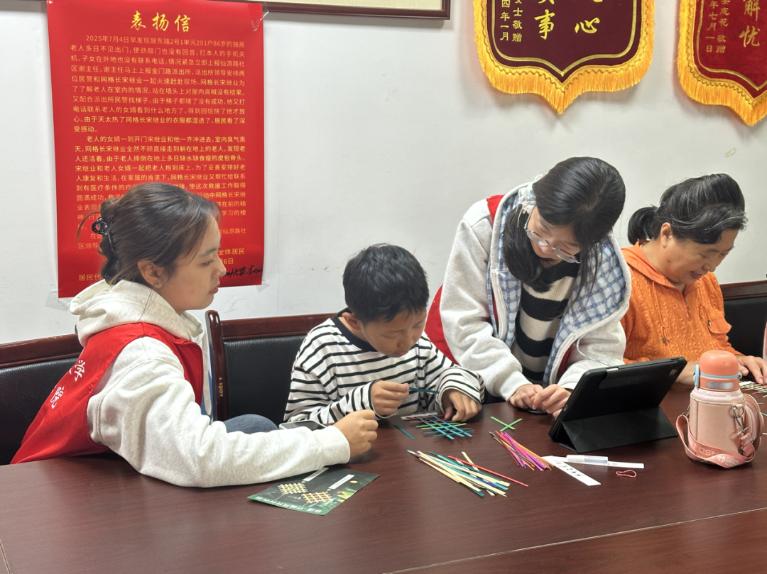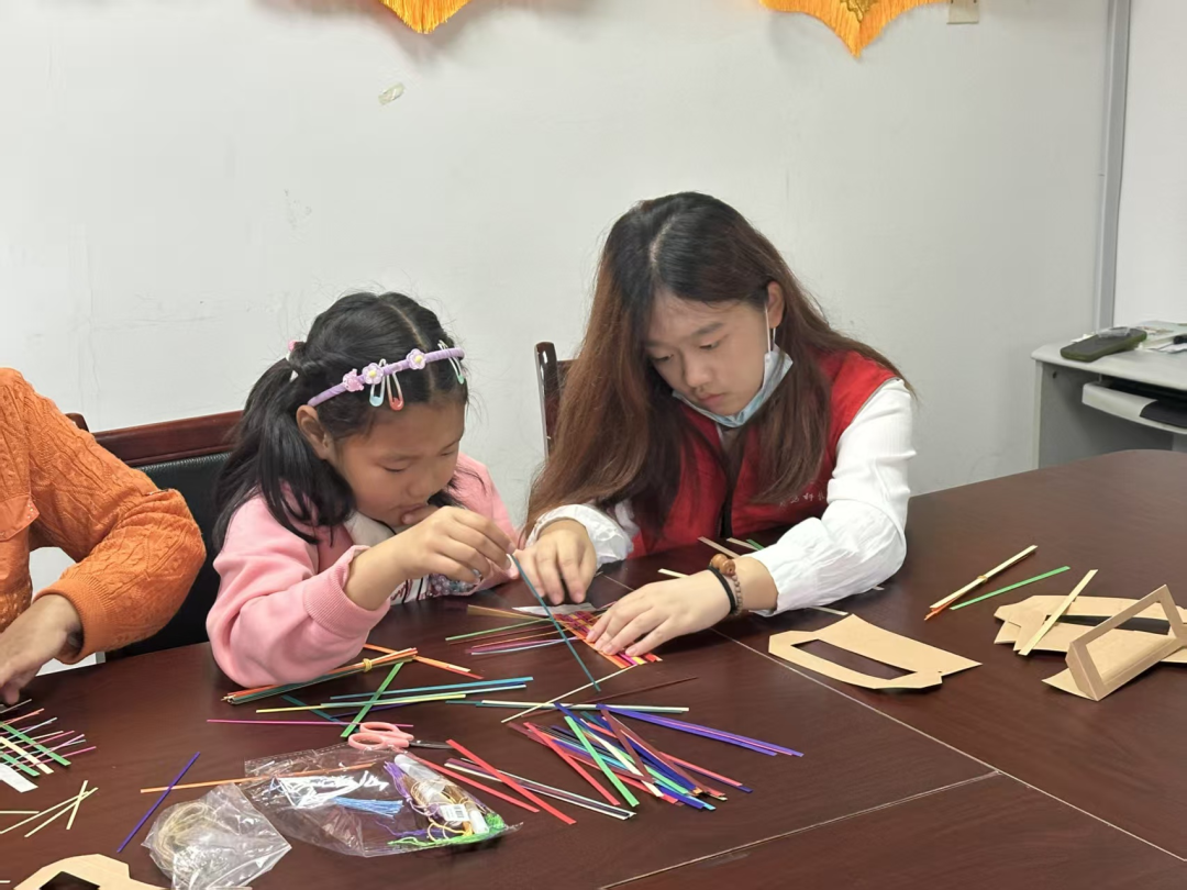 制作环节中,志愿者们手把手指导孩子们编织书签与挂饰,在“编”与“织”的韵律中传递工艺智慧。分组协作的默契、攻克难点的喜悦、分享心得的热忱,让竹篾在灵巧指尖焕发新生。志愿者们以专业素养与饱满热情,将“奉献、友爱、互助、进步”的志愿精神融入每一个细节,用实际行动践行服务社区群众的初心,锤炼为民服务本领,彰显新时代老员工挺膺向前的精神风貌。