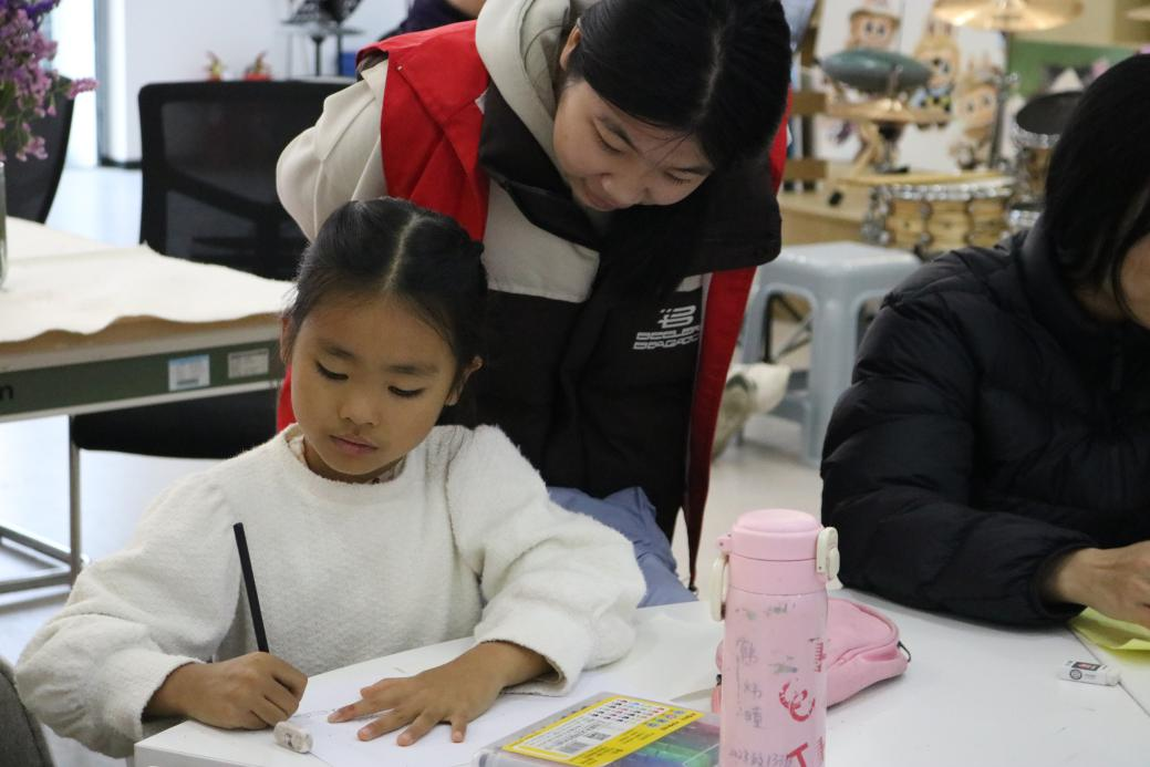 在分组创作环节中,孩子们在志愿者指导下自主组队,围绕“小猫找朋友”“太空冰淇淋车”等主题展开创作。从手绘初稿到AI导入、从动作设置到音效搭配,志愿者全程引导,既传授技术操作,更注重培养团队协作与问题解决能力,让孩子们完整经历从灵感到成品的创意全过程。