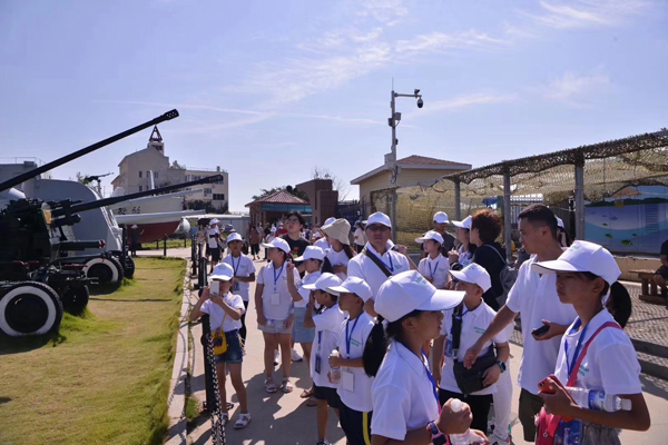 2019年8月17日是海信冰箱“读书观海看世界”活动正式启动的第二天。上午志愿者和孩子们首先来到了海军博物馆,进入馆区,一排排战斗机整整齐齐的排列着,武装直升飞机、鱼雷、舰炮、高射炮……稀奇的军事装备目不暇接,令孩子们十分震撼。