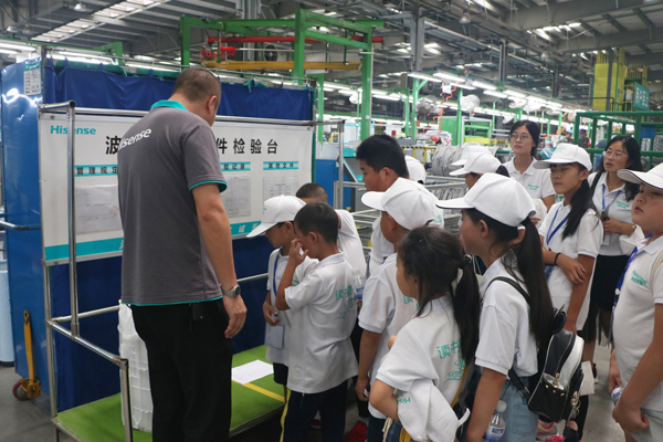 吃过午饭后,孩子们又乘车来到了海信平度基地,参观冰箱和洗衣机的生产过程。讲解人员缓缓道来,用十分生动、简洁、形象的语言向孩子们展示生产的各个环节,孩子们认真地听着讲解人员的介绍。平度之旅为孩子们打开了新世界的大门,将一颗颗科技的种子种在了小朋友的心中,激发了他们对科学技术的兴趣。