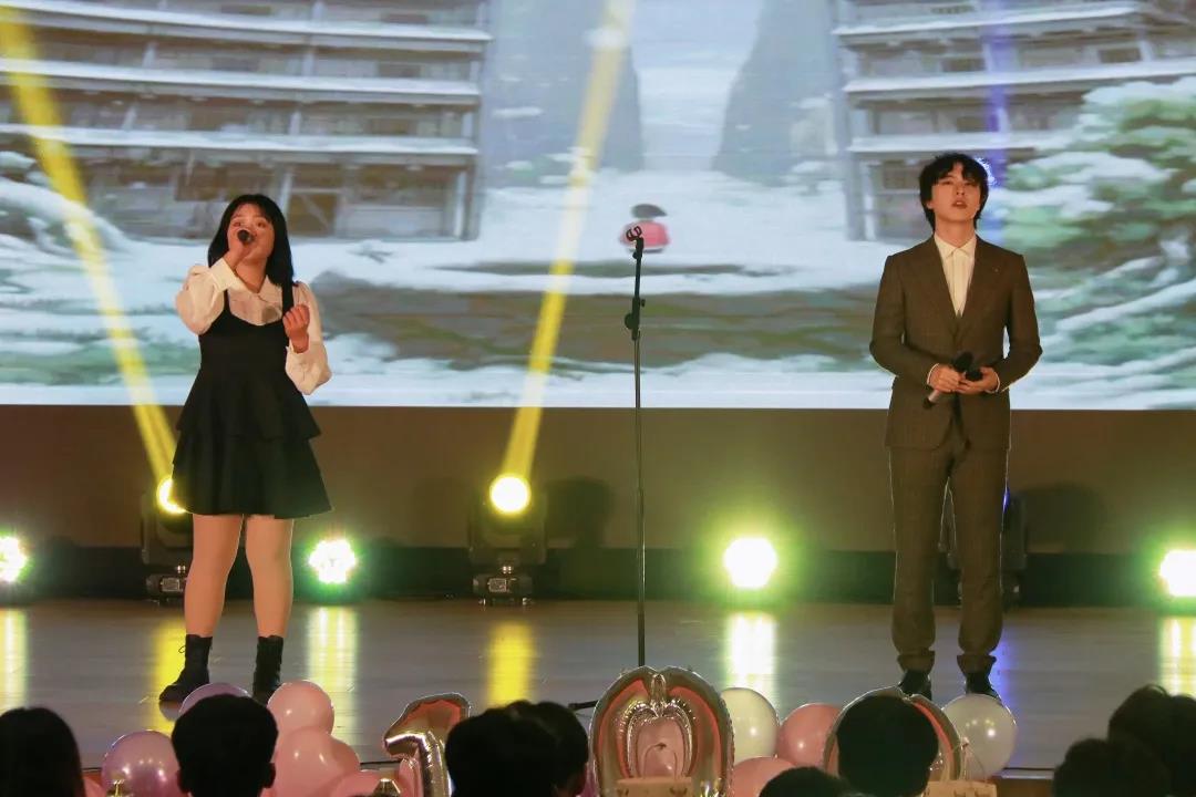 闫涵、王慧带来了相声《谁是主角》,诙谐的对话引得台下掌声一片,欢笑声中,同学们体会到了传统曲艺的魅力。