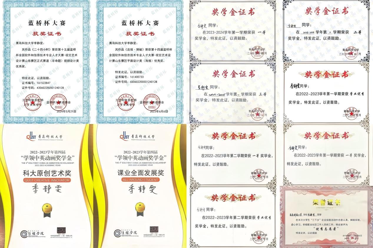 项目提供的多元发展机遇,让我不断丰富技能储备,在保研竞争中脱颖而出。从平面设计到微电影创作,从 AI 制图到动画制作,项目课程覆盖了多个相关领域,每一次实践都让我积累了宝贵经验。这些技能的提升,让我在各类专业大赛中崭露头角,先后荣获第十四届蓝桥杯平面设计优秀奖、第十五届蓝桥杯视频设计优秀奖等荣誉。在保研面试中,我能够自信地向面试官展示自己的综合能力,证明自己具备跨专业学习的潜力与实力。我深知,机会永远留给有准备的人,正是中英项目赋予的多元技能与持续的自我挑战,让我在竞争激烈的保研路上站稳了脚跟。